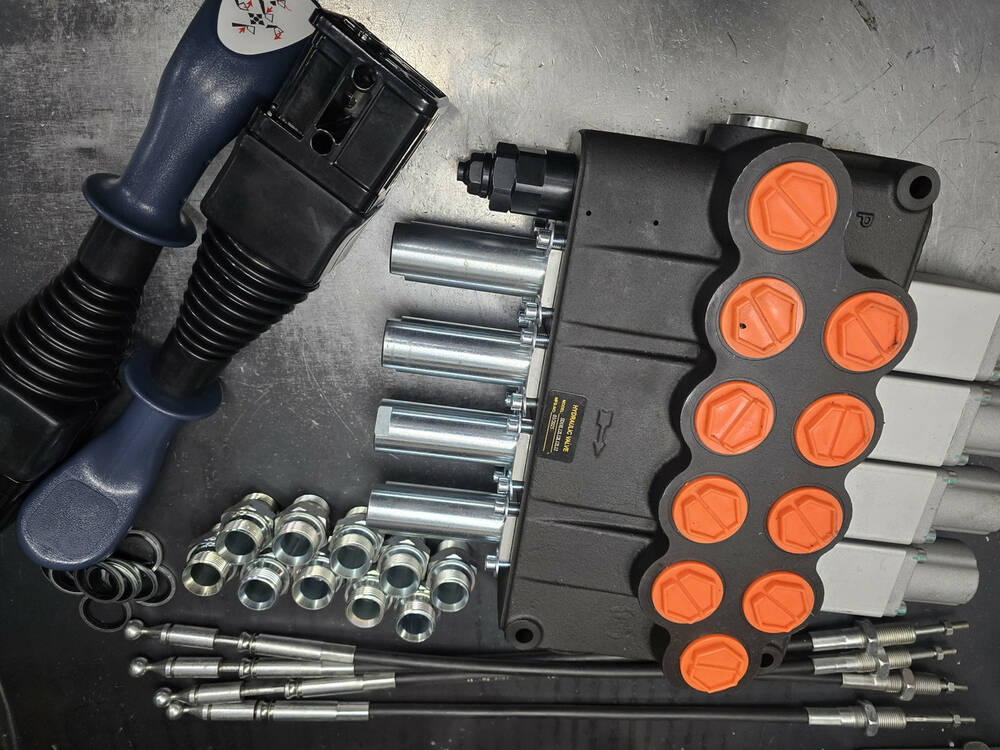 На цей гідророзподільник у нас є комплект для під'єднання тросів, кити, джойстик