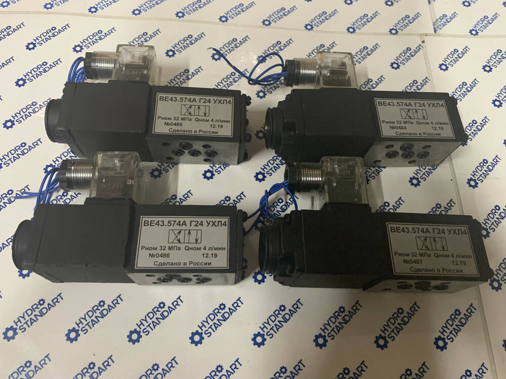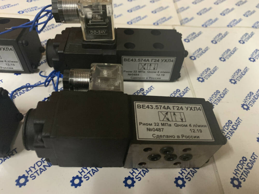Гідравлічні розподілники типу ВЕ43.14, ВЕ43-24, ВЕ43-34, ВЕ43-44, ВЕ43-573, ВЕ43-574А, ВЕ43-754А є двопозиційним з одностороннім керуванням, з умовним проходом 4 мм, нормально-закритими з пружинним поверненням золотистика.