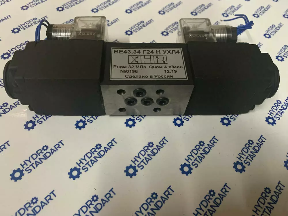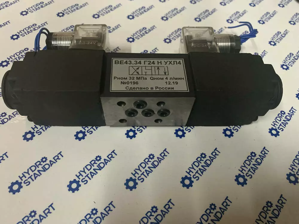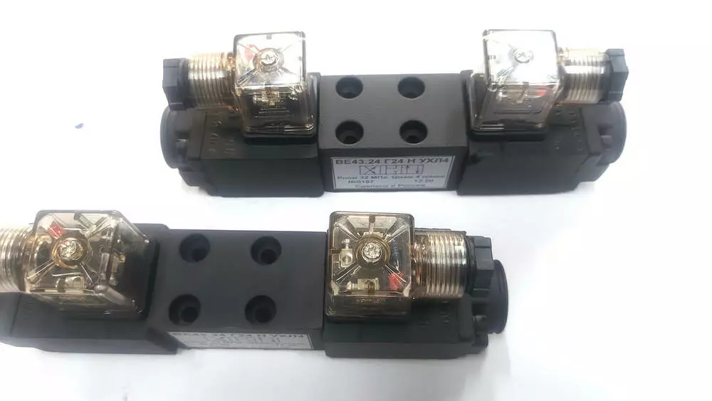 Гідророзподільник ВЕ43.34 з двостороннім електромагнітним керуванням.