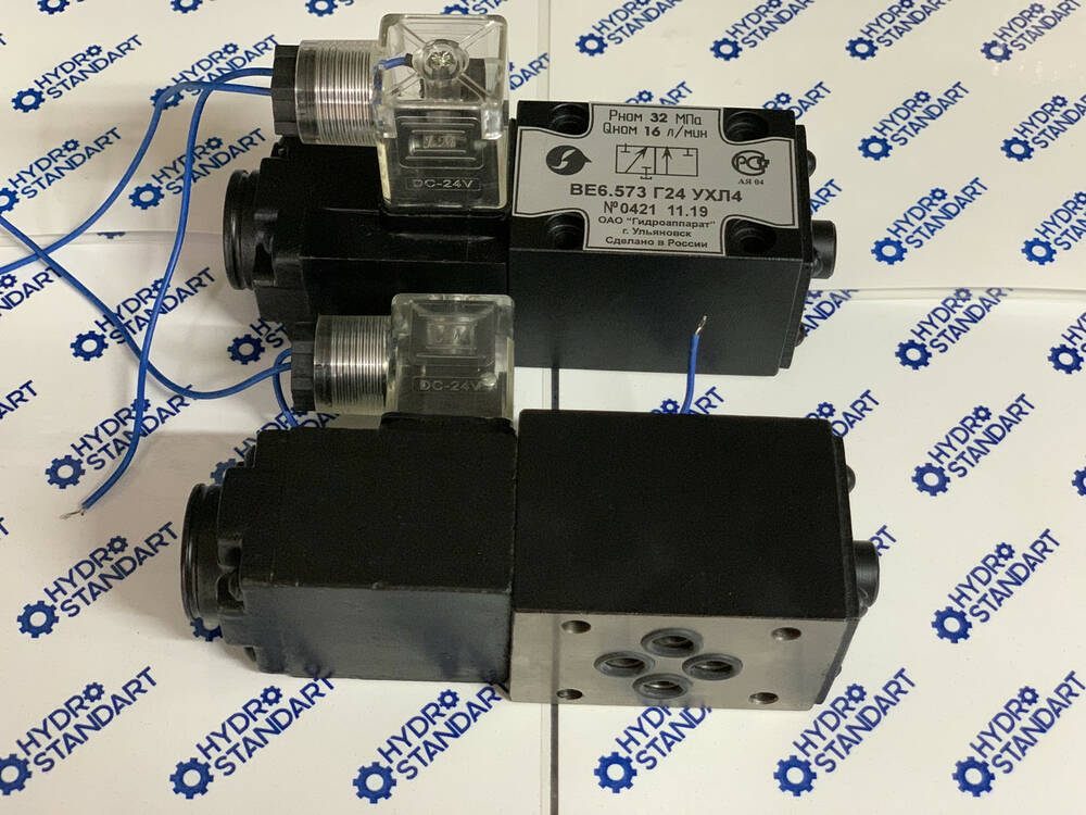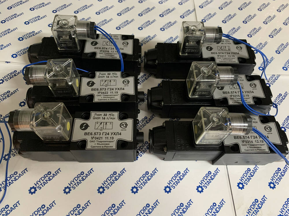 Гідравлічні розподілники ВЕ6.574 Г 24, ВЕ-6.574 Г 12, ВЕ6.574 В 220, ВЕ6.574 В 110 призначені для керування й зміни напрямку або пуску та зупинки потоками робочих рідин у гідравлічних системах. Перемикання положення золотника відбувається за допомогою керівного елемента — електромагнітного (привода електромагнітного).