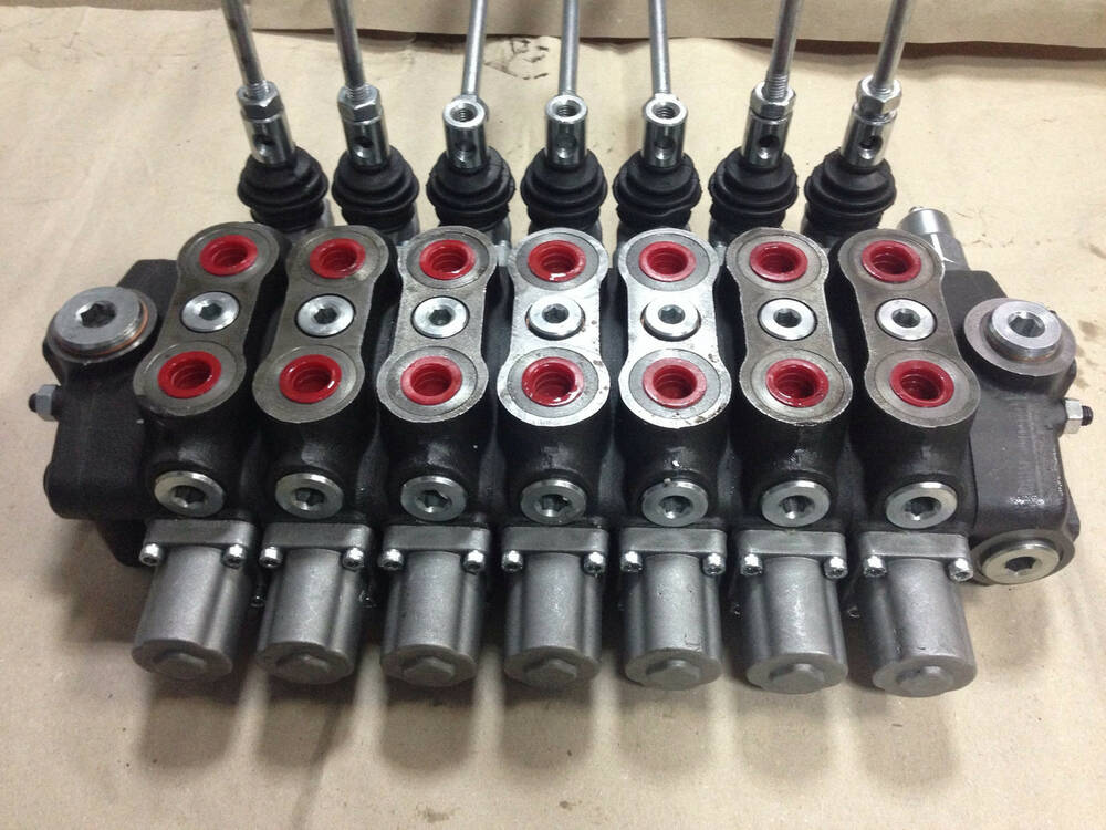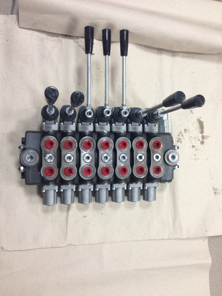 Болгарський 7 секційний гідророзробник виробництва Badestnost оригінал з ручним управлінням на 7 секцій секцій секцій секцій секцій секційний в комплекті з 2-ма механічними 4-координарними джойстиками і антишоковими клапанами (для регулювання тиску на кожній частині каналу A і каналу B) на кожну секцію можливо встановити 2 антишокових клапанів, наприклад, операція "Под'єм і Опускання" або "Поворот праворуч і Волев". Ціна визначається за комплектом з ОДНІМ антишоковим клапаном.