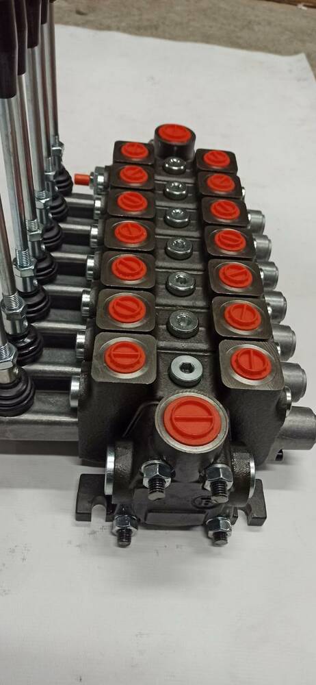 Пропорціальний 7-мі секційний гідророзробник РС100 з номінальною подачою олії 100 л/мін ( 120 л/мін максимальна пропускна здатність), виробництва Badestnost, Болгарія, оригінал! Цей гідророзробник має ручне керування, можливо, вмонтоване тросове управління, або управління за допомогою джойстиків, прикріплених безпосередньо на гідророзвідувачі.