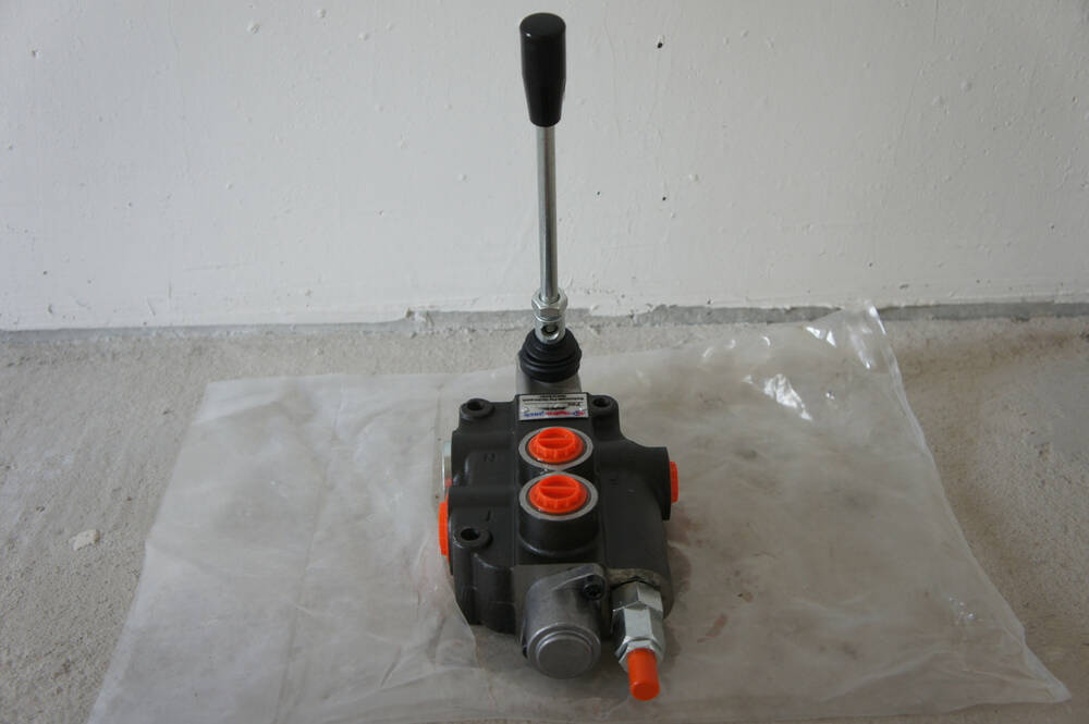 Гідророзподільник моноблоковий Р80 імпортний односекційний із номінальною подаванням оливи 80 л/хв. виробництва провідних заводів гідравліки з ручним керуванням на 3 положення та пружинним поверненням ручки в нейтральне положення.
