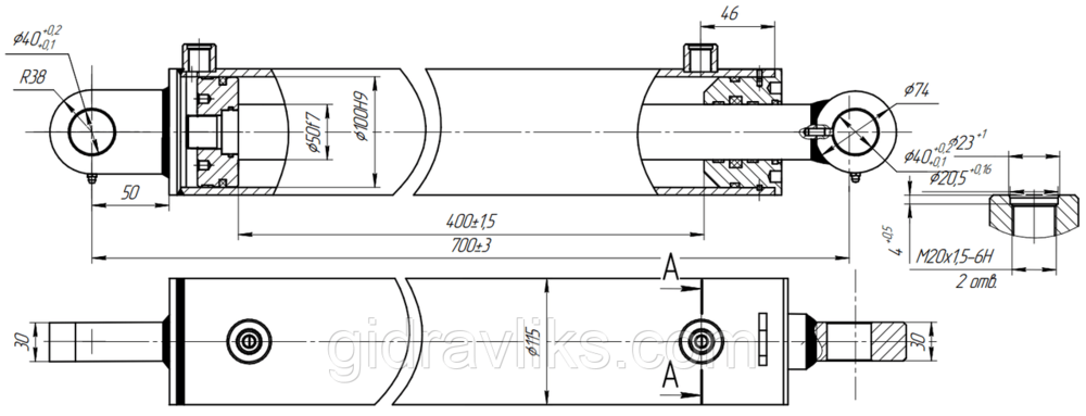 Гідроциліндр 100х50х400х700 (хід штока 400 мм) МС100х50х400.22 БДВП -6,3(Красилів) АКПН –6 (Красилів)