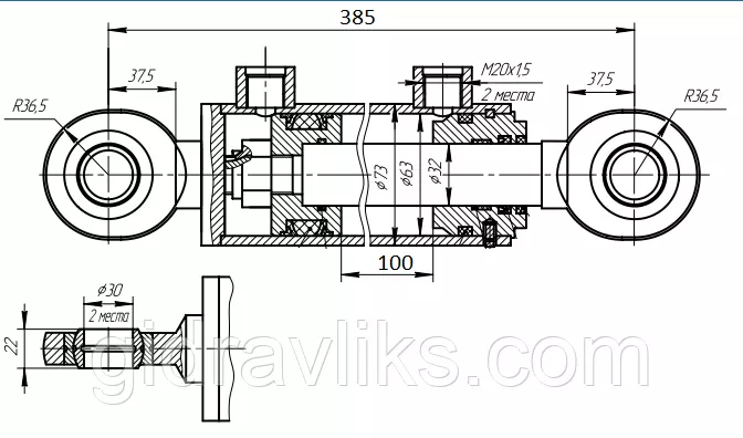 Гідроциліндр 63.32.100.01 385 ( хід штока 100 мм)