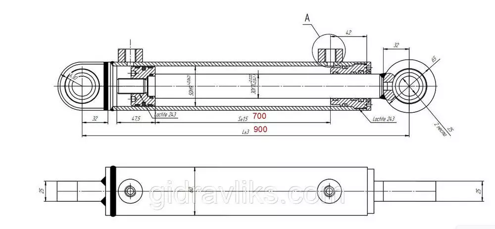 ГЦ 50х30х700х900 ш/с 25 — це гідроциліндр двосторонньої дії з подовженим ходом штока 700 мм і шарнірними кріпленнями типу ш/с (отвір Ø25 мм). Використовується в техніці, де потрібна велика амплітуда переміщення та висока надійність: у дровоколах, підйомниках, сільськогосподарських агрегатах, самоскидних кузовах, а також у саморобних або універсальних гідросистемах.