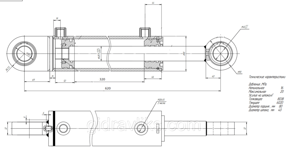 Гідроциліндр призначений для використання в комунально-універсальних навантажувачах (КУН) та іншому гідрофікованому обладнанні, де потрібне двостороннє зусилля з кріпленням під шарнір (ШС).