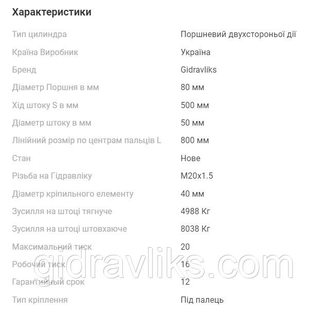 Гідроциліндр КУН 80х50х500.800 під палець МС80/40х500-3(4).22(800)