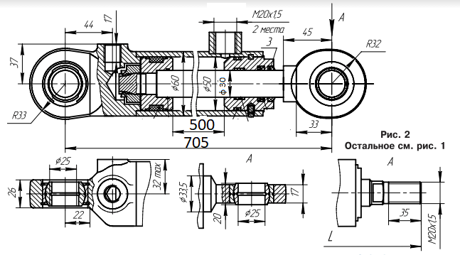 Гідроциліндр навантажувача ГЦ 50.30.500.705.25 — хід штока 500 мм
