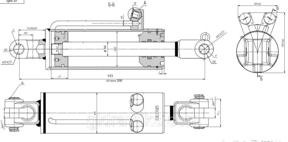 Гідроциліндр навіски ГЦ 100х50х200.515 — МТЗ, Т-40 (рогатий шток, Ø 50 мм)