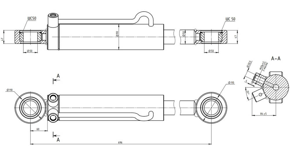 Діаметр штоку: 50 мм