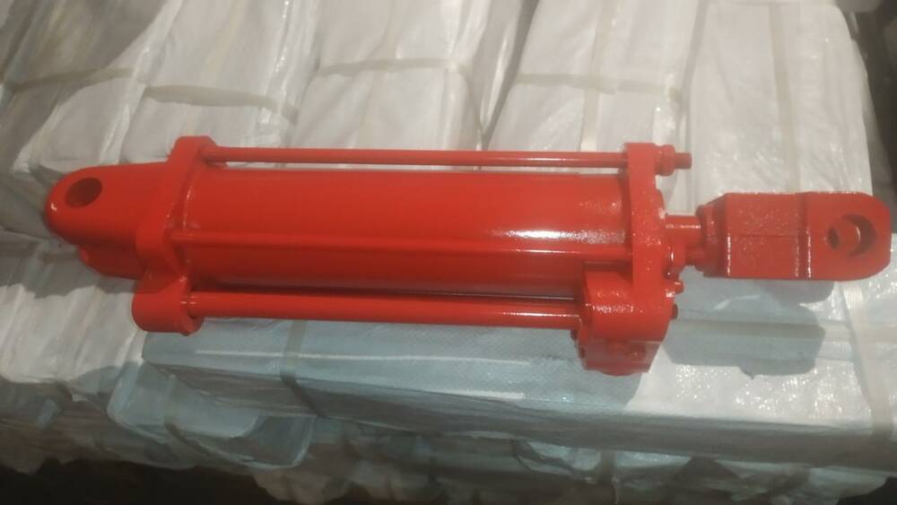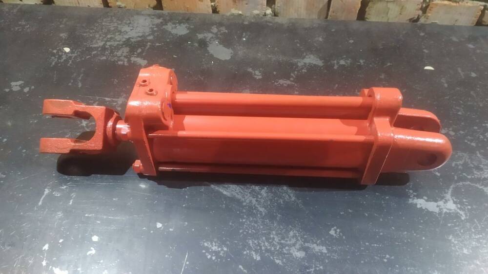 Корпус гідроциліндру ґрунтується циліндром із двома спеціальними кришками, стягнутими між собою стяжними шпильками. Шток гідроциліндра складається з поршня закріпленого за допомогою гайки й ущільненого гумовими кільцями, вилки, рухомого упору та самого металевого штока. У кришці корпусу з боку штока для запобігання підтіканню змонтовані ущільнення, так само вмонтований клапан гідромеханічного регулювання руху поршня.