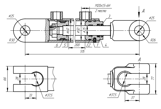 Гідроциліндр ЦС50.25.200.515 вилка вилка (ход штока 200) Cіялки. культиватор. ЗСК -100