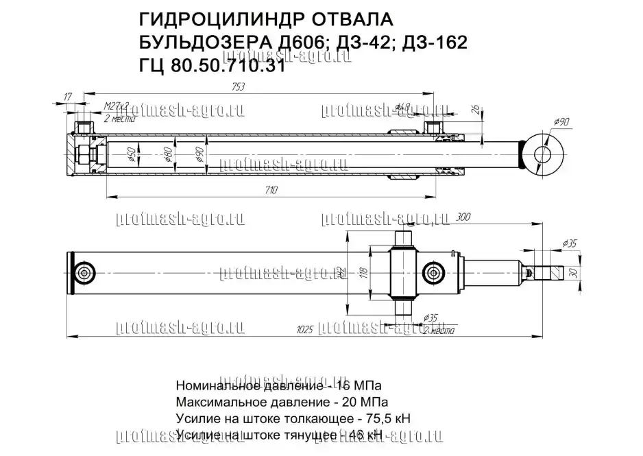 Гідроциліндр відвалу Д606,ДЗ-42,ДЗ-162