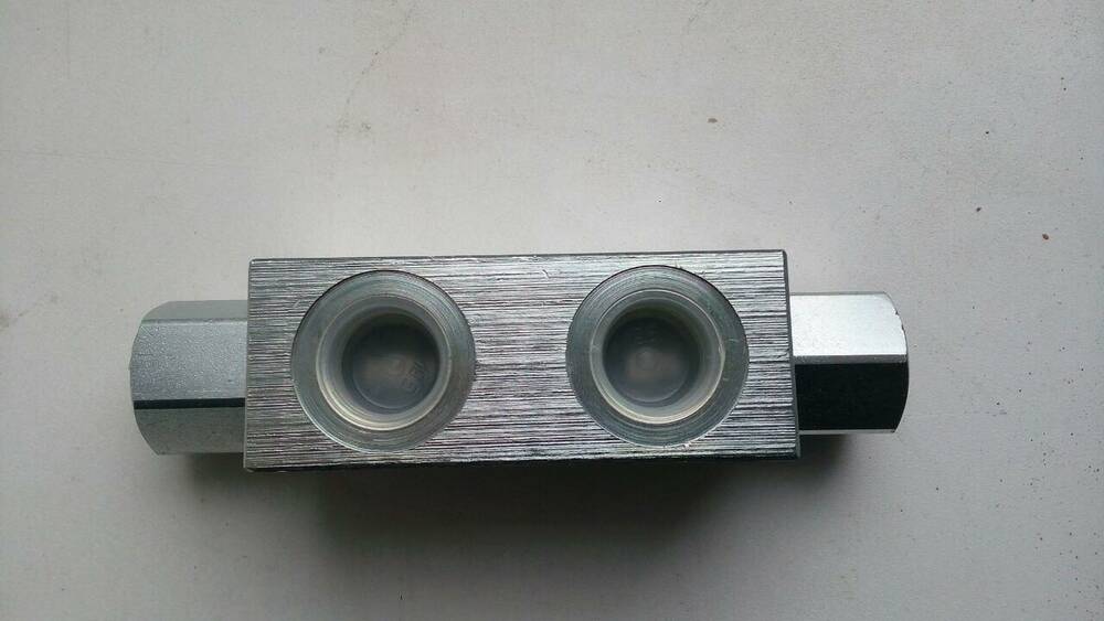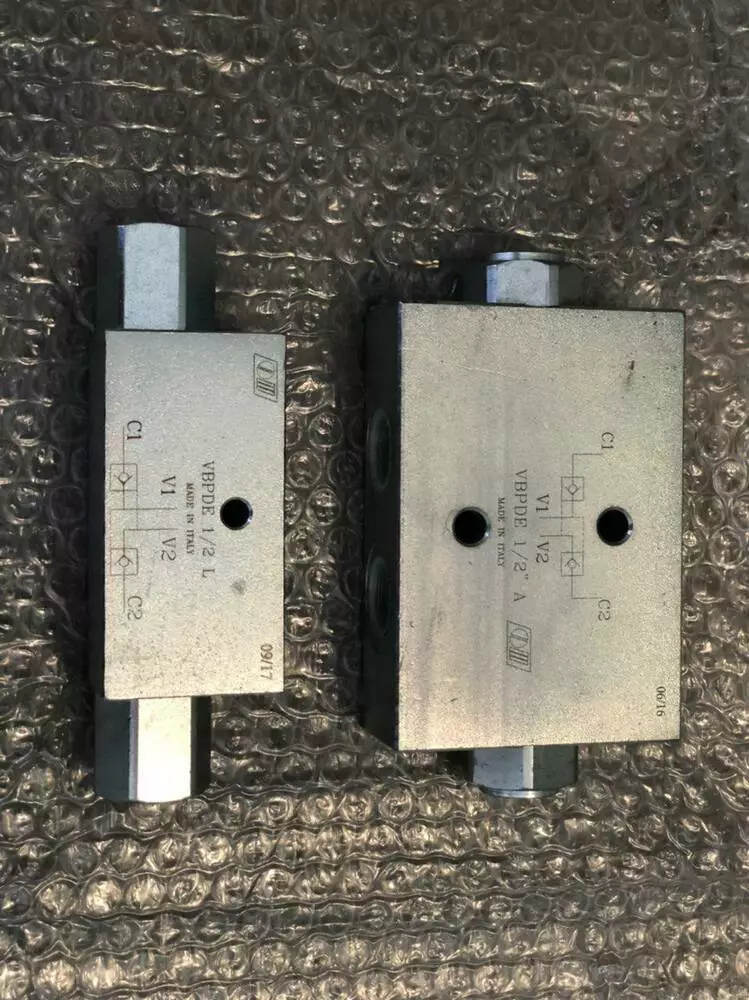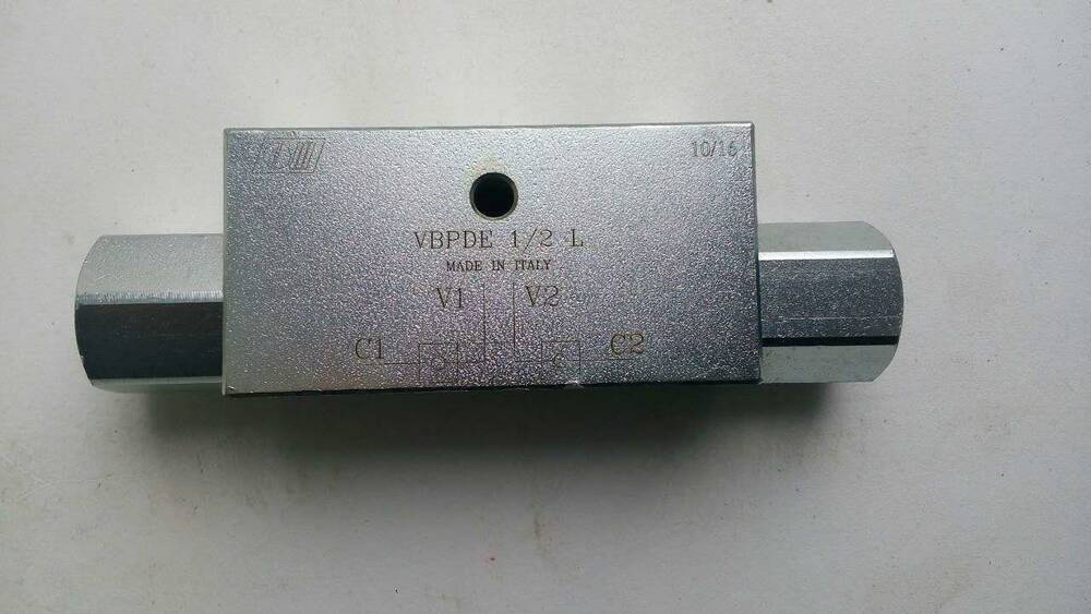 Гідрозамок імпортний виробництво Італія тип VBPDE 1/2" L даний гідрозамок дозволяє вільно пропускати до 50 л/хв потоку робочої рідини в одному напрямку і замикає потік в протилежному напрямі до тих пір, поки тиск керування (пілотне управління) не відкриє запірний елемент.