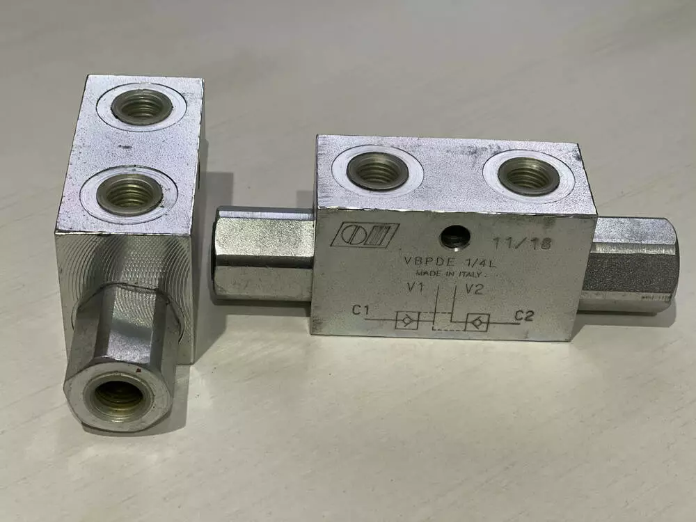 Гідрозамок імпортний виробництво Італія тип VBPDE 1/4" L, цей гідрозамок дає змогу вільно пропускати до 20 л/хв потоку робочої рідини в одному напрямку та замикає потік у протилежному напрямку доти, поки тиск керування (пілотне керування) не відкриє запірний елемент.