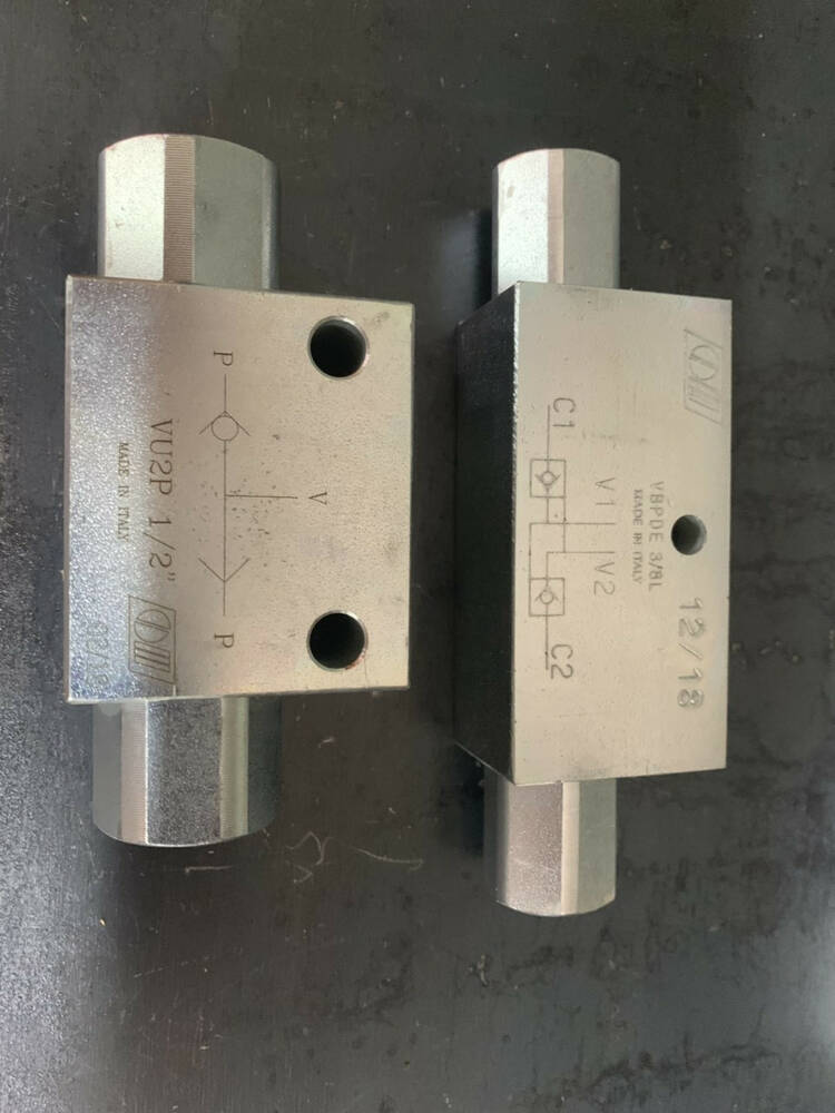 Гідрозамок імпортний виробництво Італія тип VBPDE 3/8" L, цей гідрозамок дає змогу вільно пропускати до 35 л/хв потоку робочої рідини в одному напрямку та замикає потік у протилежному напрямку доти, поки тиск керування (пілотне керування) не відкриє запірний елемент.