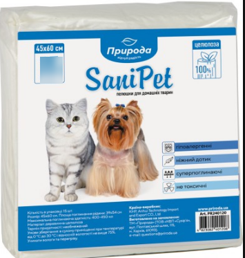 Пелюшки з нетканого полотна ТМ «Природа» чудово вбирають рідину і запахи, знадобляться як господарям цуценят, так і дорослих собак.