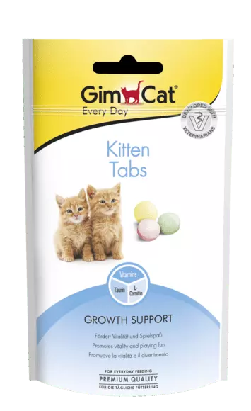 Вітаміни для кошенят Gimpet Baby Tabs (Гимпет Табс Бебі) являють собою цінну комбінацію життєво важливих вітамінів, кальцію, мінеральних речовин, таурину, L - карнітину і молозива. Молозиво - необхідно для розвитку рухових функцій.