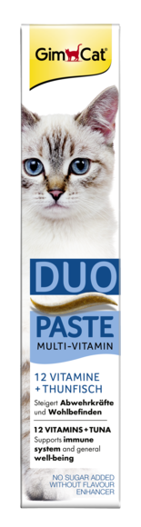 Сильна імунна система надзвичайно важлива для здорового життя. Підвищене споживання вітамінів має вирішальне значення під час стресу або загострення потреби в них. Ось чому в таких рекомендується вживати добавки. Мультивітамінна Дуо-паста GimCat 12 Вітамінів із Тунцем забезпечує ідеальний баланс між споживанням вітамінів та смаковими якостями. Його формула робить пасту привабливою, забезпечуючи додаткову вітамінну підтримку навіть найвибагливішим котам.