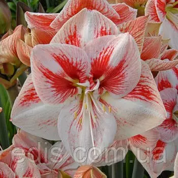 квітки білі, з густою червоної штрихуванням, до 22 см в діаметрі;
