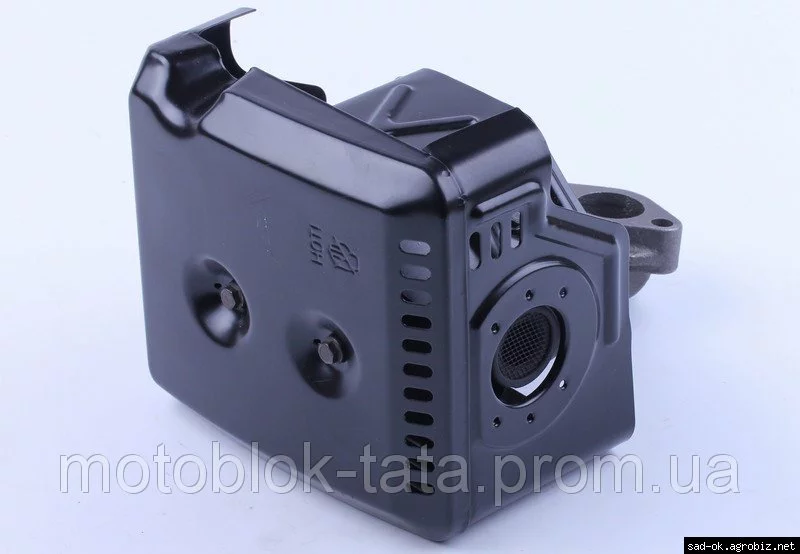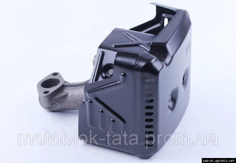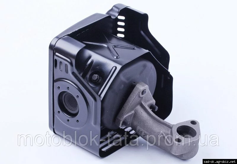 Глушитель с коленом 177F подходит на бензиновые двигатели мотоблоков, культиваторов и др., мощностью 9 л.с. с воздушным охлаждением. Материал: крашенный металл, колено - чугун. Вес: гр.