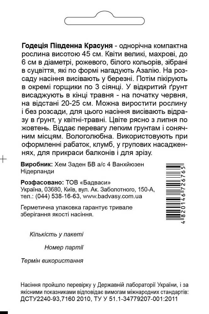 Годеція азалієвидна Південна Красуня, 0,2 г, Садиба Центр