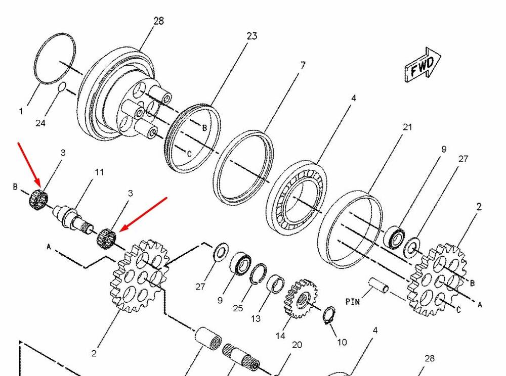 Голковий підшипник редуктора ходу Caterpillar E70B 7I-2318