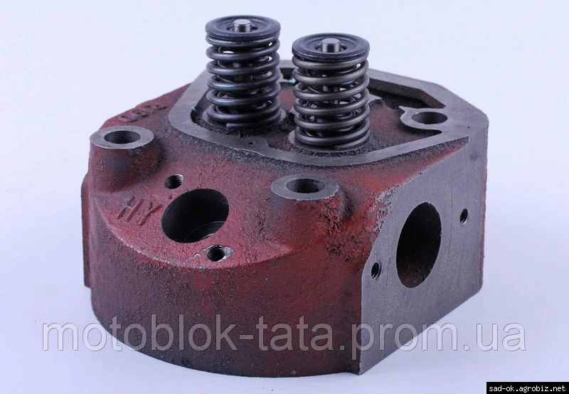 Головка цилиндра в сборе - 190N подходит на дизельные двигатели мотоблоков и мототракторов мощностью 10 л.с. с водяным охлаждением. Материал: чугун. Комплектуется клапанным механизмом в сборе. Клапаны, для качественной работы двигателя, необходимо притереть. Вес: 5230 гр.