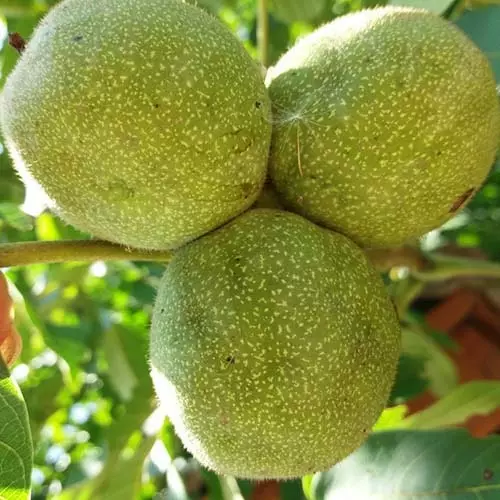 Плоди утворюються на пагонах минулого року. Врожайність стабільна, висока, смакові якості відмінні. Плоди округлої форми, масою 11-15 г, шкаралупа тонка, жінка в руці може роздушити два горіхи. Перегородки всередині тонкі, добре відокремлюються. Ядро містить до 14,5% білків, 68-73% жирів, 7,0 - 12,5% цукрів. Ядро світле, солодке. Плоди досягають знімною зрілості в кінці вересня.