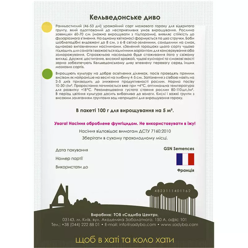 Кельведонское диво - овочевий горох. Ранньостиглий, низькорослий (45 - 60 см) сорт. Використовується для вживання в свіжому вигляді, переробки і консервування зеленого горошку. Стрючки довгі, розташовані по два на квітконожці, що містять 8 - 9 світло - зелених горошин, солодких на смак. Стійкий до несприятливих умов вирощування.