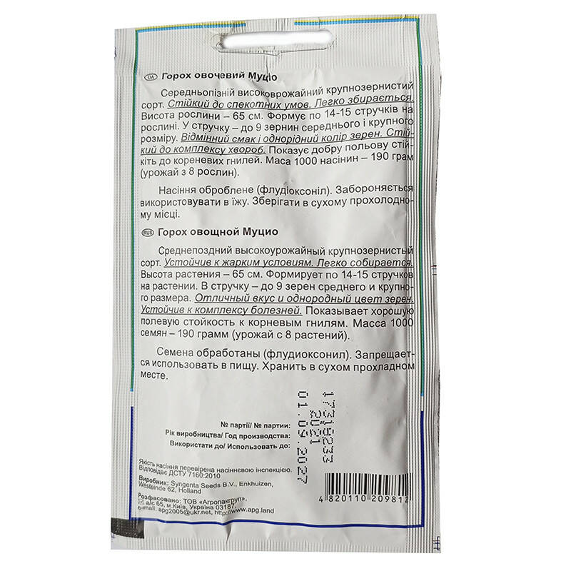 Горох овочевий Муціо, 10 г, Агропакгруп
