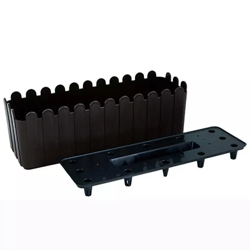 Горщик балконний Парканчик призначений для вирощування квітів на лоджіях та балконах. Вазон оформлений у вигляді паркана та представлений у базових кольорах. Висота конструкції – 16,0 см. Цього достатньо для вирощування петуній, фіалок та інших літніх кольорів. У комплект входить дренажна вставка, яка відводить зайву воду та сприяє аерації коріння.