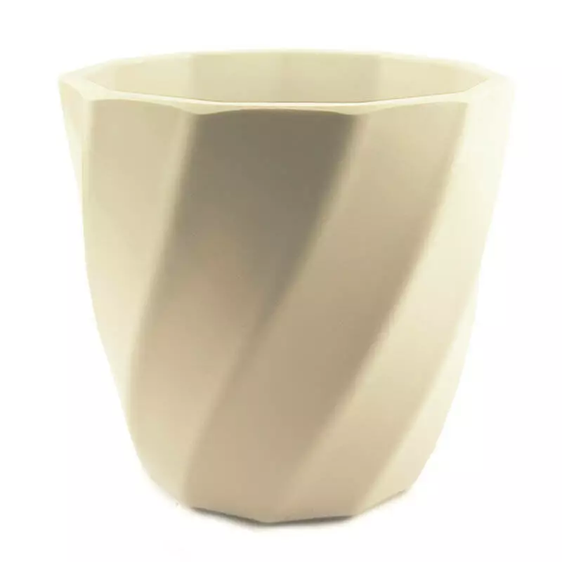 Це невеликий квітковий горщик цікавої гранованої та спіральної форми, що дозволяє йому бути стійким і зручним у використанні і догляді. Така форма ідеально впишеться в будь-який інтер'єр і підкреслить красу рослини. А невеличкий розмір підходить для маленьких кактусів або різноманітних сукулентів. У комплект підставка не входить. Дно горщика не має дренажні отвори, але є виділені місця на яких можна їх проробити.