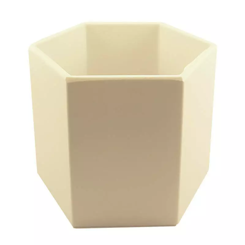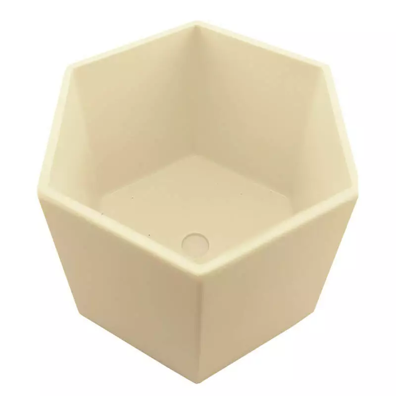 Це невеликий квітковий горщик цікавої гранованої форми, що дозволяє йому бути стійким і зручним у використанні і догляді. Така форма ідеально впишеться в будь-який інтер'єр і підкреслить красу рослини. А невеличкий розмір підходить для маленьких кактусів або різноманітних сукулентів. У комплект підставка не входить. Дно горщика не має дренажні отвори, але є виділені місця на яких можна їх проробити.