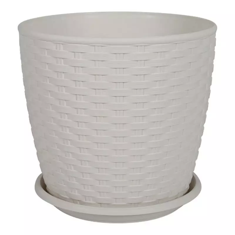 Горщик Ротанг з поліпропілену оформлені настільки незвичайно, що можуть використовуватися для оформлення як кімнат, так і елементів садової архітектури. Підходять для посадки невеликих дерев та рослин з розгалуженою кореневою системою.