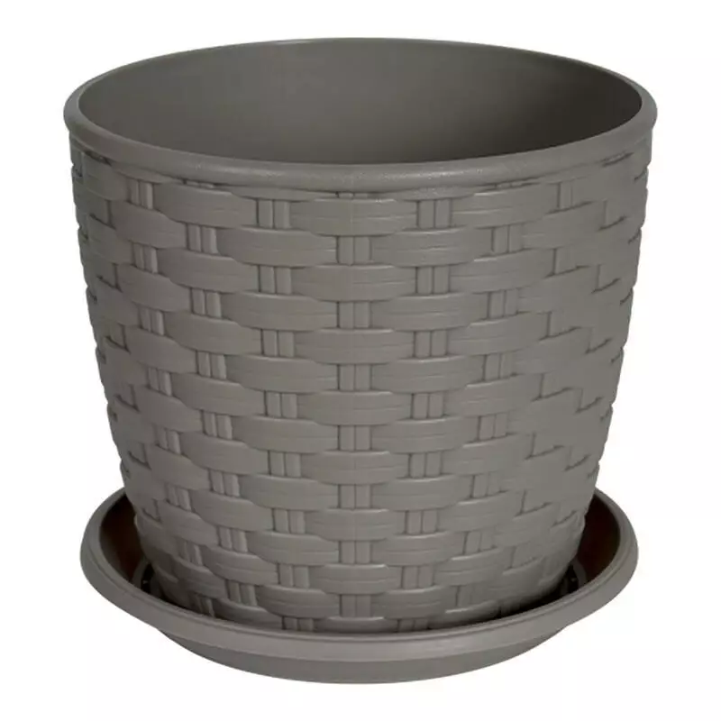 Горщик Ротанг з поліпропілену оформлені настільки незвичайно, що можуть використовуватися для оформлення як кімнат, так і елементів садової архітектури. Підходять для посадки невеликих дерев та рослин з розгалуженою кореневою системою.