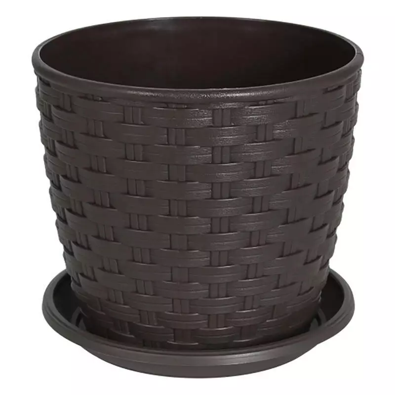 Горщик Ротанг з поліпропілену оформлені настільки незвичайно, що можуть використовуватися для оформлення як кімнат, так і елементів садової архітектури. Підходять для посадки невеликих дерев та рослин з розгалуженою кореневою системою.
