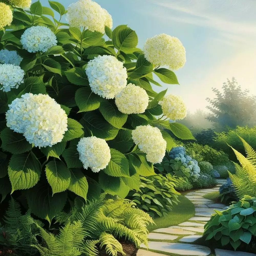 Гортензія Аннабель - Один з кращих сортів, кущ висотою 120-150 см і шириною 90-150 см, росте швидко, суцвіття великі, симетричні, діаметром до 25 см, квітки кремово-білі. Цвітіння на пагонах поточного року, рясне з липня-серпня.
