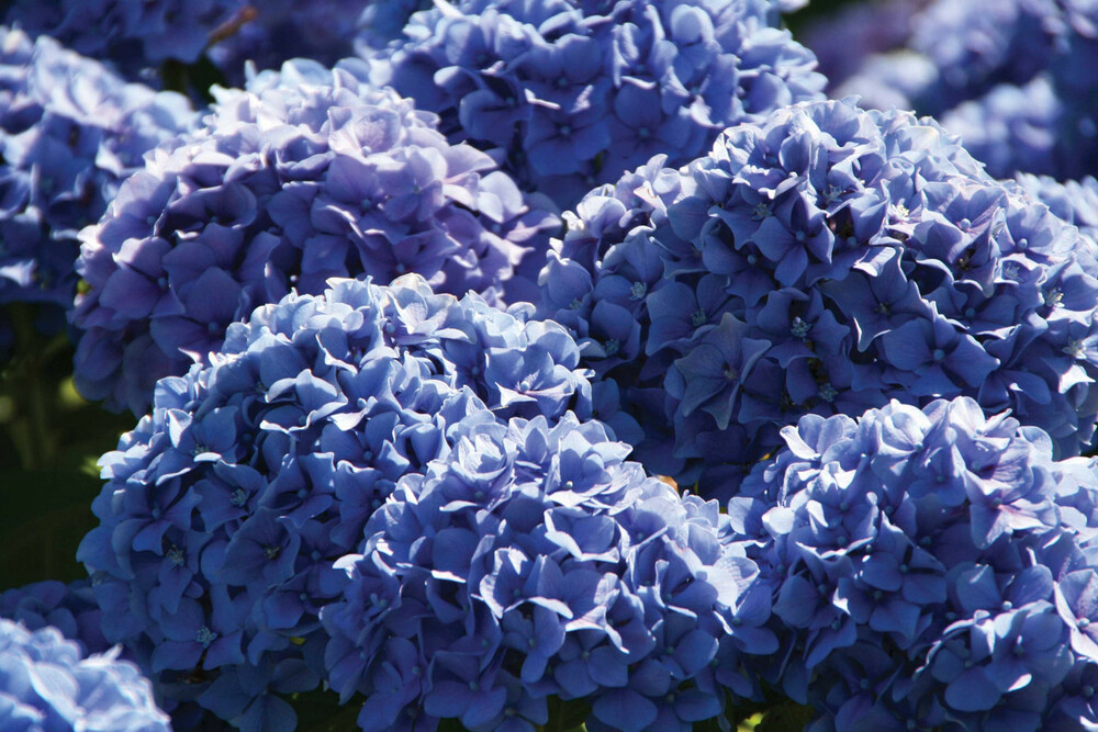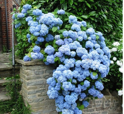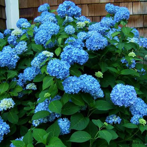 Квітки: суцвіття формуються як на молодих пагонах поточного року, так і на пагонах попереднього року. Забарвлення суцвіть бузково-синя або синьо-блакитна. За формою суцвіття - щитковидні. Діаметр суцвіть: від 10 до 16 см. Спочатку квіти зявляються на старих пагонах, пізніше на молодих.Для голубого кольору потрібно кислий грунт, при нейтральному або лужному грунті колір мінятиметься на рожевий. Цвіте на тогорішніх та молодих пагонах.