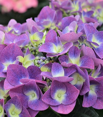 Родзинкою сорту є великі бузково - блакитні суцвіття з подвійним рядом декоративних квіток. В залежності від кислотності грунту квіти змінюють своє забарвлення у більш сині тона. Листя яскраво - зелені. Віддає перевагу вологим, кислим, добре дренованим грунтам.Чудово виглядає висадженою у контейнері, при цьому зменшується в розмірі куща.