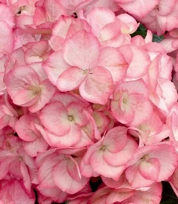 Морозостійкий сорт, що квітне великими ніжно - рожевими квітами з тонкою облямівкою по краю пелюсток, зібрані в великі, до 20-25 см в діаметрі суцвіття. На початку цвітіння квіти білого кольору з тонкою рожевою облямівкою, а після ця облямівка розширюється на всю квітку, залишаючи лише кремово - біле вічко в середині. Квітне на минулорічних пагонах. Віддає перевагу кислим, вологим, добре дренованим грунтам.
