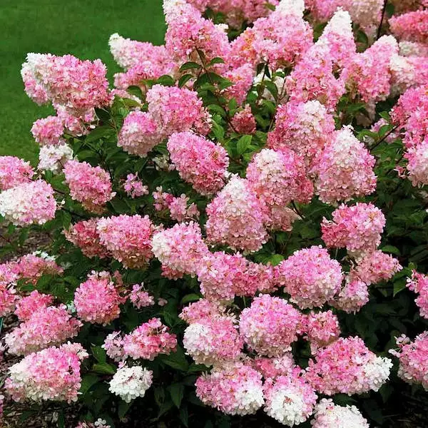 Мітільчата гортензія Vanille Fraise (Ваніла Фреіз) - з спокусливою назвою, не залишить байдужим нікого. Її суцвіття унікальні - до 30 см в довжину і близько 20 см в ширину, з плавним переходом від білого до малинового і багряного відтінку. Вони не строго конічні за формою, але пухнасті, як вата. Інтенсивність кольору залежить від місця розташування: на сонці квіти стають блідими і швидше відцвітають. Листки темно-зелені, овально-яйцеподібні. Період цвітіння - з кінця липня по вересень.