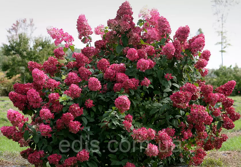 Гортензія Wim's Red Гортензия метельчатая Wim's Red.Новинка.Куст прямостоячий, высотой и диаметром 150-200 см, хорошо разветвлённый, побеги сильные.Выведена селекционером Wim Rutten и сразу же стала мировой сенсацией, т.к этот сорт трижды меняет окрас соцветия - от белого в июле через розовый в августе в темно красный с сентября. Гортензия метельчатая Wim's Red имеет очень крупное соцветие - до 30 - 35 см в длину с чарующим ароматом меда. Но это еще не все его достоинства. Этот сорт так же имеет очень длинный период цветения - со средины июня по октябрь. Сорт устойчивый к болезням. Зона морозостійкості: 5 (-29 / -23 °C). На зиму потребує легкого укриття. Місце для гортензії краще вибрати притінене. Гортензії люблять пухкий, вологий, кислий грунт.