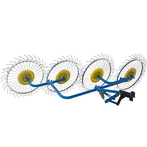 Завдяки тому, що диски встановлені на шарнірно-рухливих рамах, вони відмінно повторюють рельєф ґрунту і ефективно згрібають сіно. Колеса встановлені на підшипники, і тому звертаються легко і якісно. Прути виготовлені з високовуглецевої сталі, що забезпечує їм високу міцність і пружність. При необхідності будь-який з вузлів можна відремонтувати або замінити.