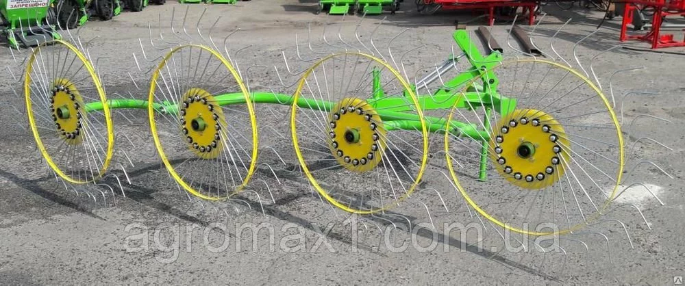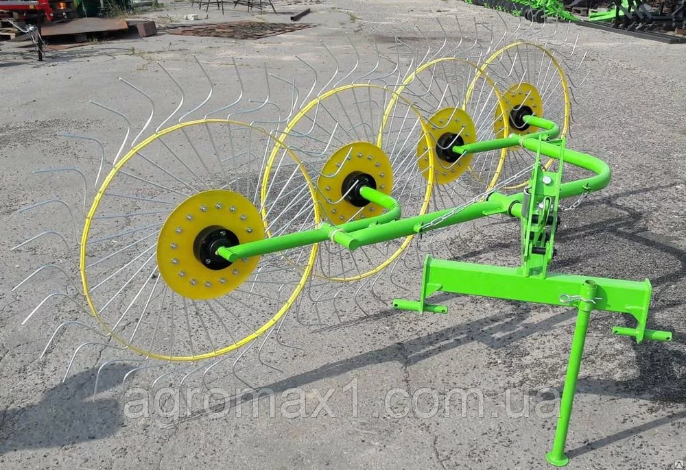 Конструкция, состоящая из четырех расположенных друг за другом колесно-пальцевых механизмов для захвата соломы, позволяет приподнимать траву для улучшения и ускорения просушки. За счет наклоняемой рейки-опоры, на которой закреплены колеса, грабли-ворошилки подходят для эффективного применения на неровной местности. Данные конструкционные особенности делают это оборудование весьма продуктивным и в процессе сгребания сена. Захват высушенной травы происходит одновременно всеми колесами, что позволяет собрать максимальное количество сена и сделать более ровные гряды. Грабли-ворошилки 4-ех колесные позволят выполнить работы по просушке и уборке сена с максимальной производительностью за короткий срок, учитывая особенности рельефа.