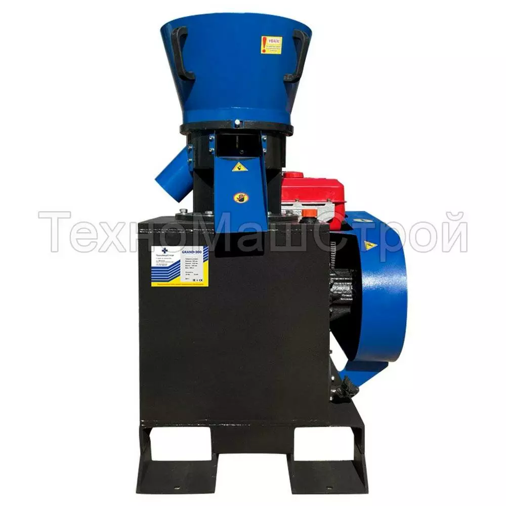Гранулятор GRAND-300 із дизельним двигуном зручний для використання в місцях із малопотужними електричними мережами. Приводом даного гранулятора є дизельний двигун потужністю 30к.с. Гранулятор оснащений нерухомою матрицею діаметром 300 мм з отворами від 2 до 8 мм (на вибір клієнта) та двома рухомими валами. Усі вузли проходять термообробку та перевірку відділом контролю якості. Обладнання дозволить робити пелети та комбікорм з продуктивністю до 400 кг/год на відходах деревообробки та до 1000 гк/год на біомасі без підключення до електромережі.