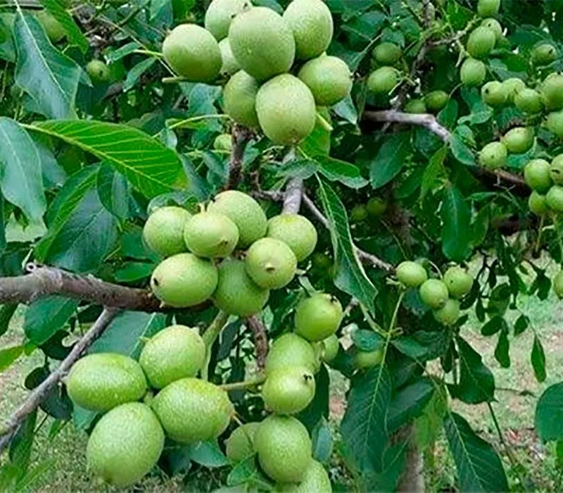 Саженцы грецкого ореха Иван Багряный на второй год уже дают плоды. Деревья этого сорта неприхотливые и урожайные. Со взрослого дерево можно собрать 20-30 кг.