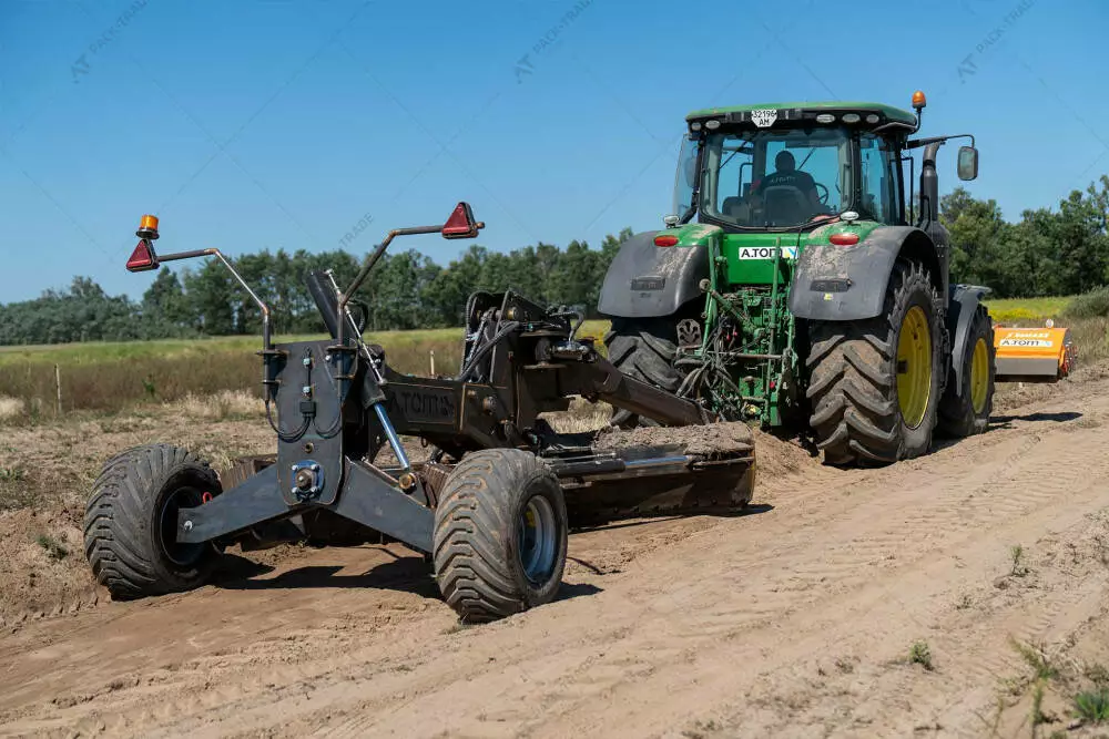 Причіпний грейдер А.ТОМ – це універсальне обладнання для вирівнювання ґрунтових, гравійних поверхонь, створення кюветів Використовується у дорожньому, сільськогосподарському та комунальному господарстві. Конструкція агрегату забезпечує просте приєднання до трактора через триточкову навіску. Робочий ніж виготовлений із зносостійкої сталі Hardox. Ідеально підходить для утримання польових і ґрунтових доріг.
