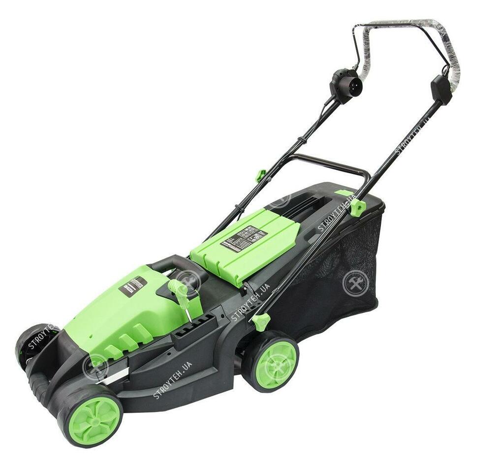 Grunhelm EM-6123A Газонокосилка электрическая несамоходная Современная газонокосилка, предназначена для стрижки травы возле дома, во дворе или небольшом саду (до 6 соток). Несмотря на пластиковое исполнение и весьма компактные размеры, она демонстрирует отличные рабочие показатели при эксплуатации в разных условиях. Техника представляет собой простой механизм, для использования которой не требуются специальные навыки, трудовые и финансовые затраты. Мощный электрический двигатель